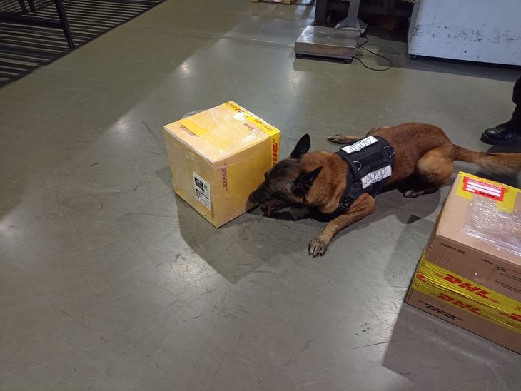 Agentes especializados de la Dirección General de Aduanas acudieron a inspeccionar la encomienda luego que la empresa DHL diera una alerta. A partir de los parámetros de riesgo aportados por el organismo, la firma logística había separado 3 envíos sospechosos en su predio de Mataderos.