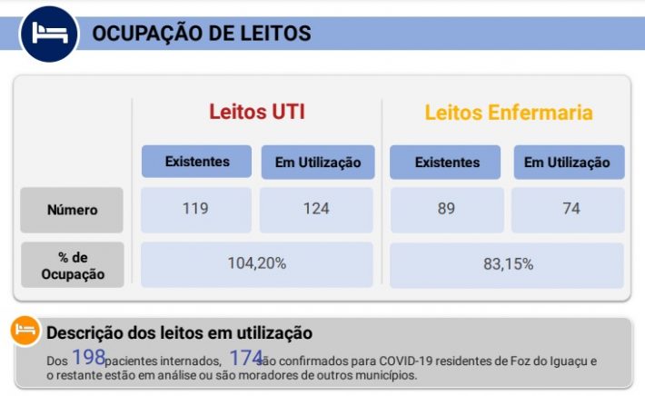 El sistema sanitario de las principales ciudades de Brasil están en permanente colapso. En Foz de Iguazú, del otro lado de la frontera con la provincia de Misiones, la ocupación de las unidades de terapia intensiva alcanzaron hoy sábado el 104,2%, ya que el Ministerio de Salud local cuenta con 119 camas y están utilizando 124.
