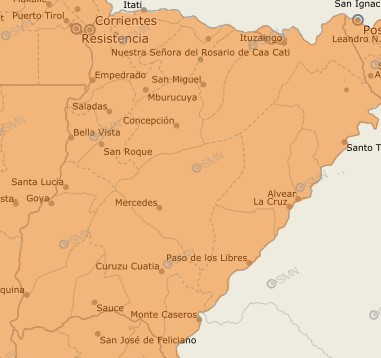 Berón de Astrada - Capital - Empedrado - General Paz - Itatà - Mburucuyá - Saladas - San Cosme - San Luis del Palmar - General Alvear - Paso de los Libres - San MartÃn - Santo Tomé - Concepción - Curuzú Cuatiá - Mercedes - San Roque - Sauce - Ituzaingó - San Miguel - Bella Vista - Esquina - Goya - Lavalle