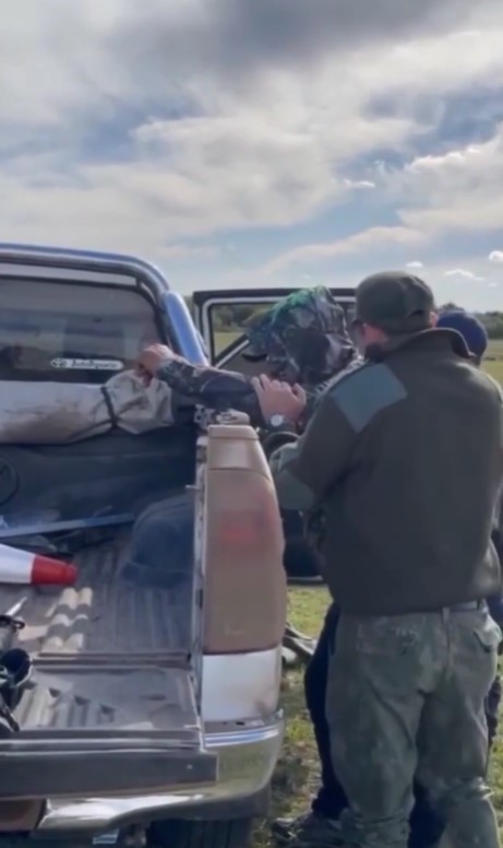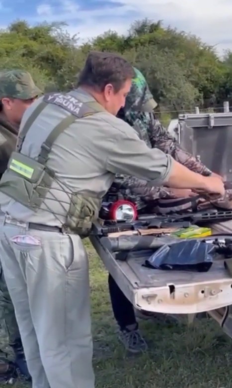 El guía se mostró reticente a ser demorado y argumentó que “no maté a nadie” y quejándose: “¿Quién es él para filmarme?”, ya que al parecer quien filmaba sería el dueño del campo. El exfuncionario se movía en una camioneta doble tracción en la que tenía varias armas.