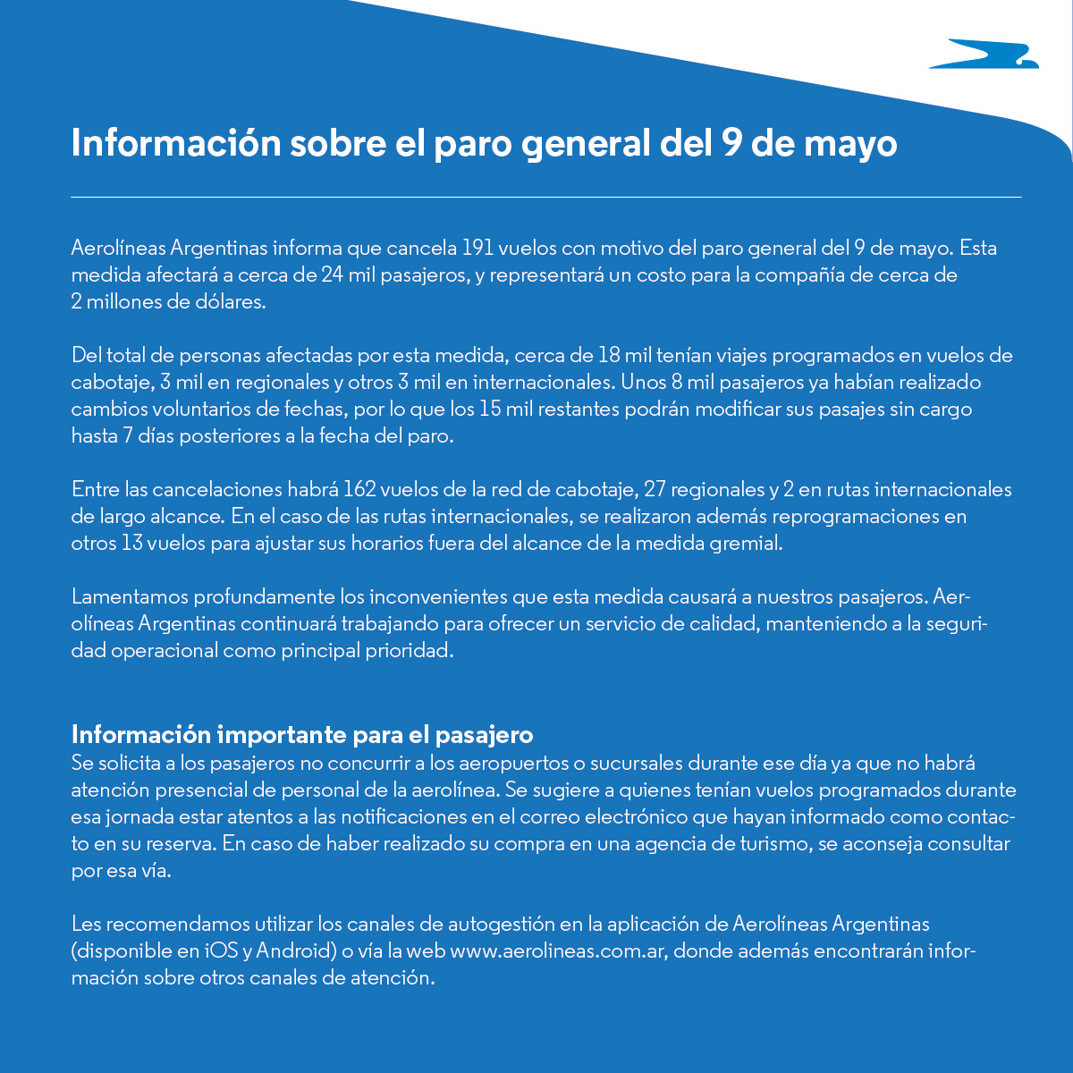 “Lo hacemos por respeto a nuestros pasajeros y al esfuerzo de nuestro dedicado personal, quienes defienden su derecho a trabajar en un ambiente libre de intimidación y extorsión”, remarcaron en el comunicado”.