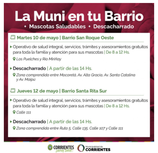 Corrientes| La Muni en tu Barrio estará la próxima semana en los barrios San Roque Oeste y Santa Rita Sur
