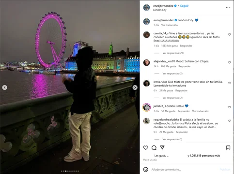 El futbolista publicó en su cuenta de Instagram un carrete de fotos de él en las calles y puntos turísticos de Londres. Rápidamente, los comentarios se preguntaron quién habrá tomado las imágenes y si se trataría de una mujer.