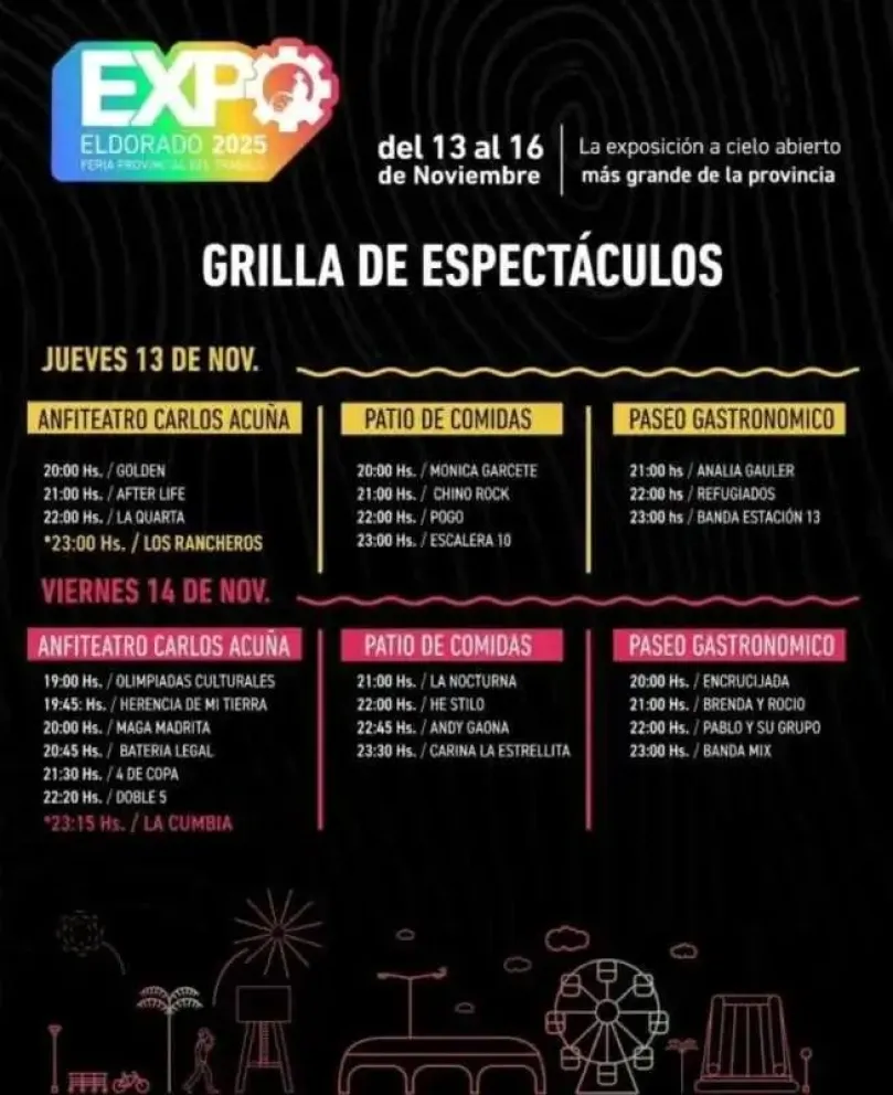 La ciudad de Eldorado se prepara para vivir desde mañana jueves 13 de noviembre, una semana inolvidable con la séptima edición de la Expo Eldorado – Feria Provincial del Trabajo, el evento a cielo abierto más grande de Misiones. Cuatro días de innovación, cultura, negocios y entretenimiento que prometen transformar la Costanera en un punto de encuentro neurálgico para toda la región.