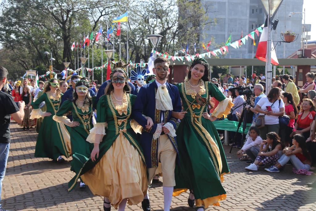 El emotivo evento comenzó pocos minutos después de las 15, y fue la colectividad Brasileña la encargada de abrir el desfile, que contó con la participación de 15 colectividades: Brasileña, Polaca, Paraguay, Checa, Italiana, Española, Suiza, Francesa, Nórdica, Ucraniana, Portuguesa, Alemana, Rusa, Japonesa, Árabe y como colectividad invitada la Húngara, además de la participación del centro cultural de Argentina, como anfitriones.