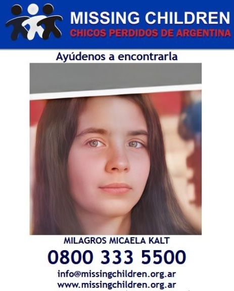 De acuerdo a la información brindada oficialmente por la Unidad Regional II de Policía, Milagros Micaela Kalt es de contextura física delgada, 1.70 de estatura, tez blanca, ojos de color celeste y cabellos castaños.