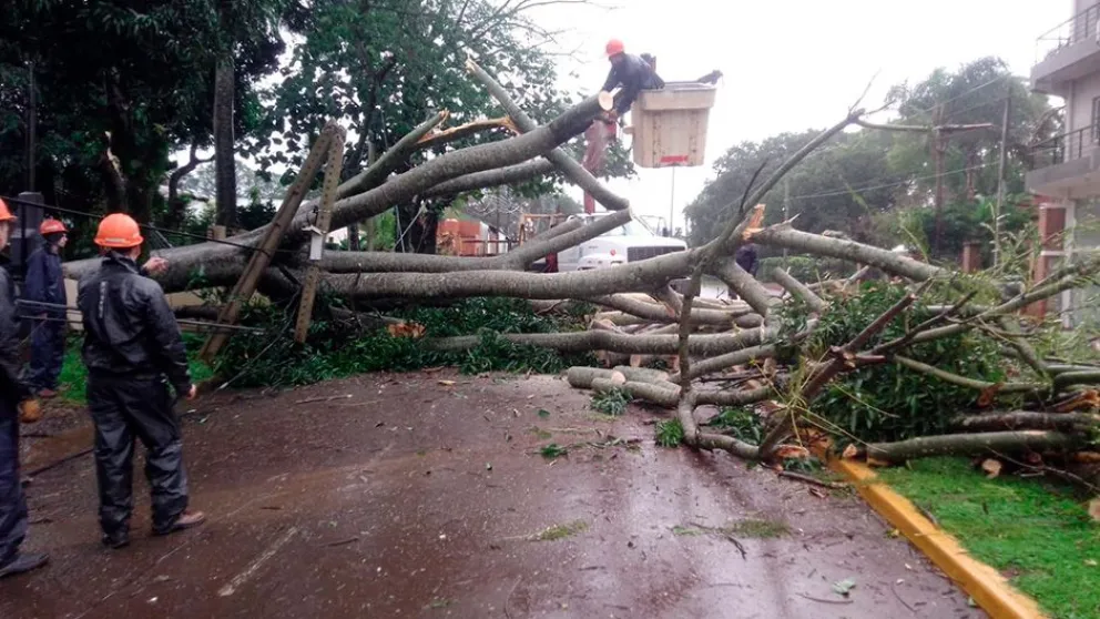 También hubo daños por caídas de ramas y árboles, y daño en el tendido eléctrico en avenida Andresito, calle Gaboto y avenida Italia.
