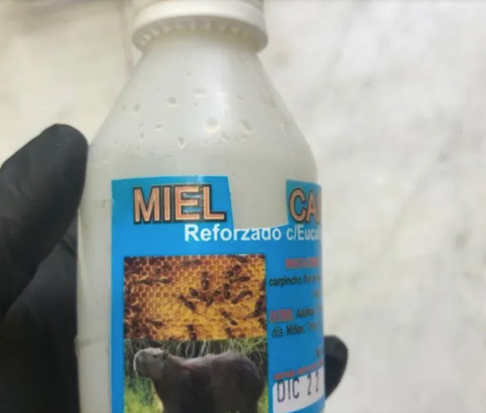 Se trata del producto "Miel con carpincho reforzado con eucalipto y limón" el cual se encuentra prohibido para su consumo y comercialización