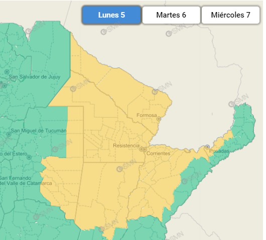 El Servicio Meteorológico anuncia alertas por tormentas para: Corrientes, Chaco y Misiones.