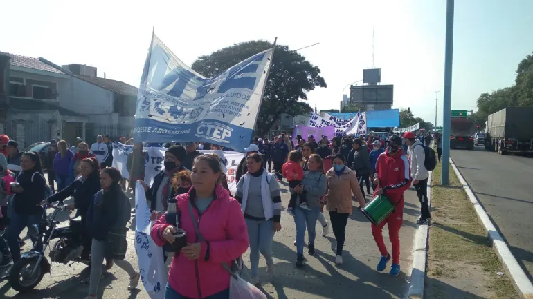 Corrientes| Piqueteros marcharon por la avenida 3 de Abril para reclamar por el Salario Básico Universal