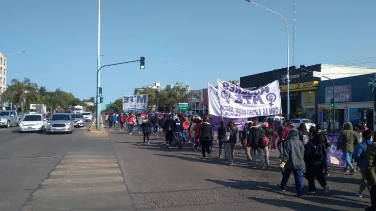 Diferentes organizaciones sociales recorrieron la avenida 3 de Abril en la ciudad. Transitaron por varias cuadras interrumpiendo el tránsito.