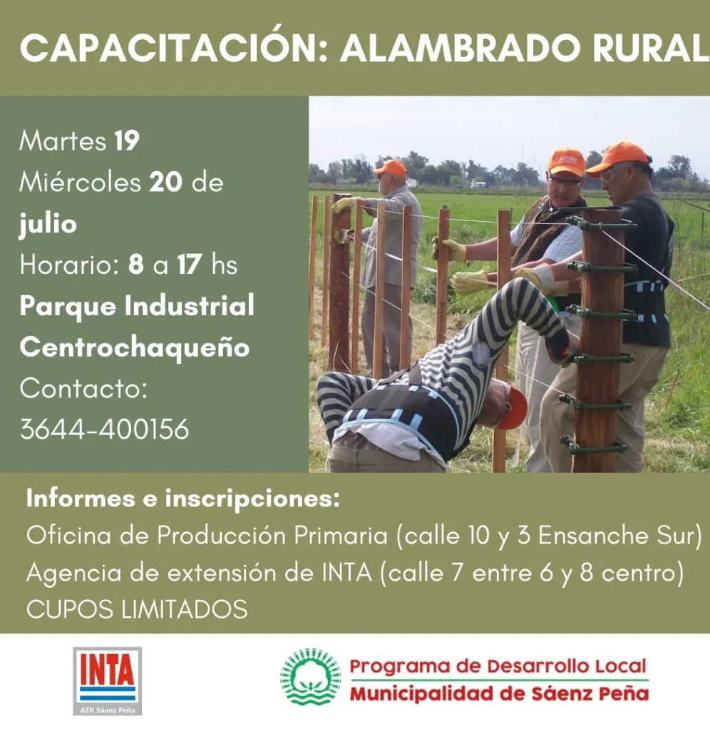 La jornada, que incluye dos días de aprendizajes a través de la confección y construcción de alambrados, es organizada por el municipio en forma conjunta con la Agencia de Extensión Rural local, a través del Centro de Capacitación Integral (CECAIN) dependiente de la Estación Experimental Agropecuaria Sáenz Peña.
